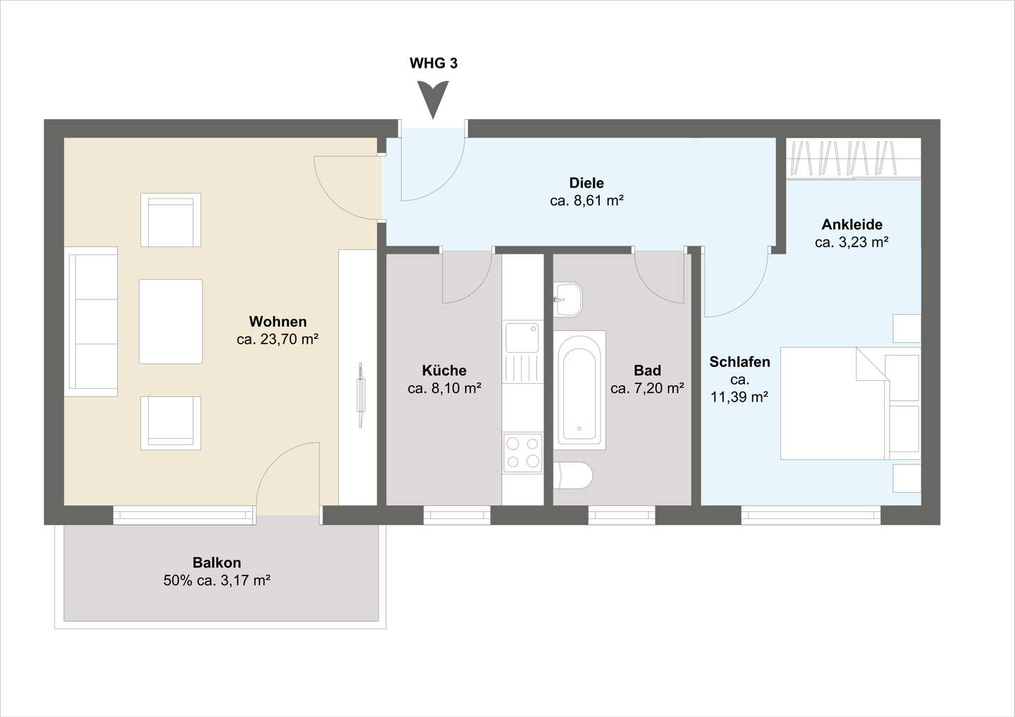Wohnfläche:ca. 65,50 m²