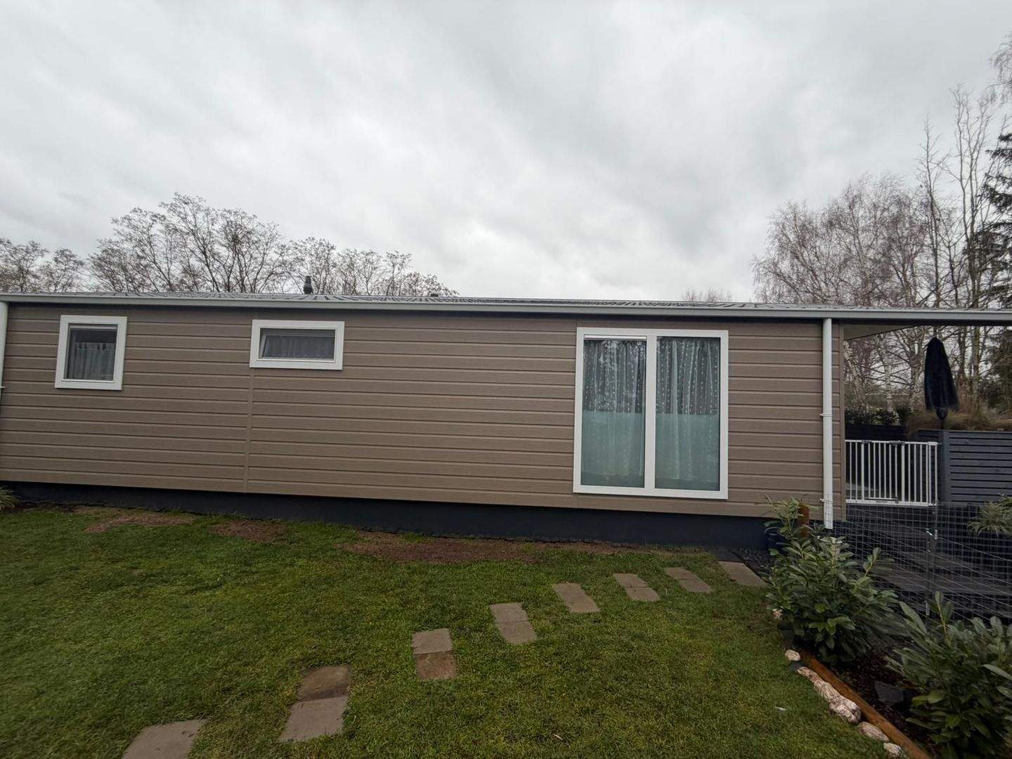 • Außenansicht - Neuwertiges, winterfestes Mobilheim mit Seeblick