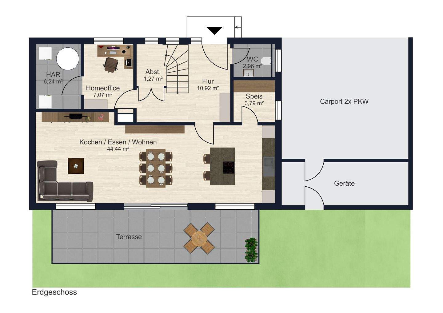 Grundriss Erdgeschoss - Einfamilienhaus mit 150,00 m² in Ergolding zum Kaufen