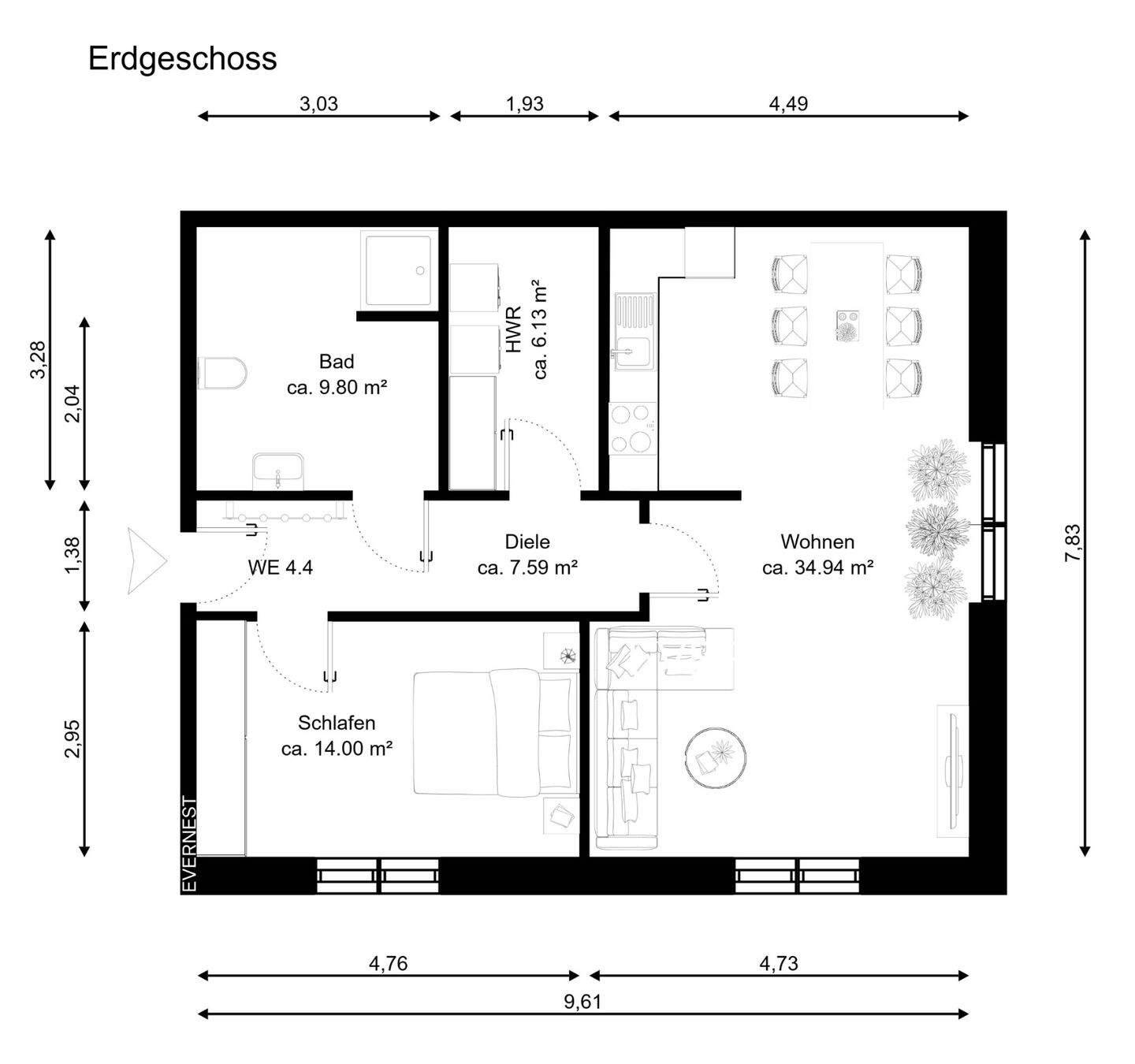 2-Zimmer-Wohnung mit eigener Terrasse Nr. 4.4
