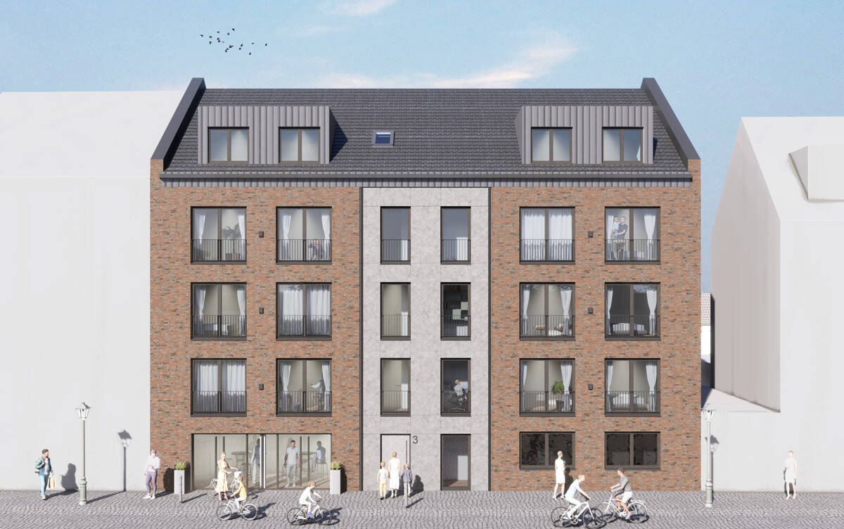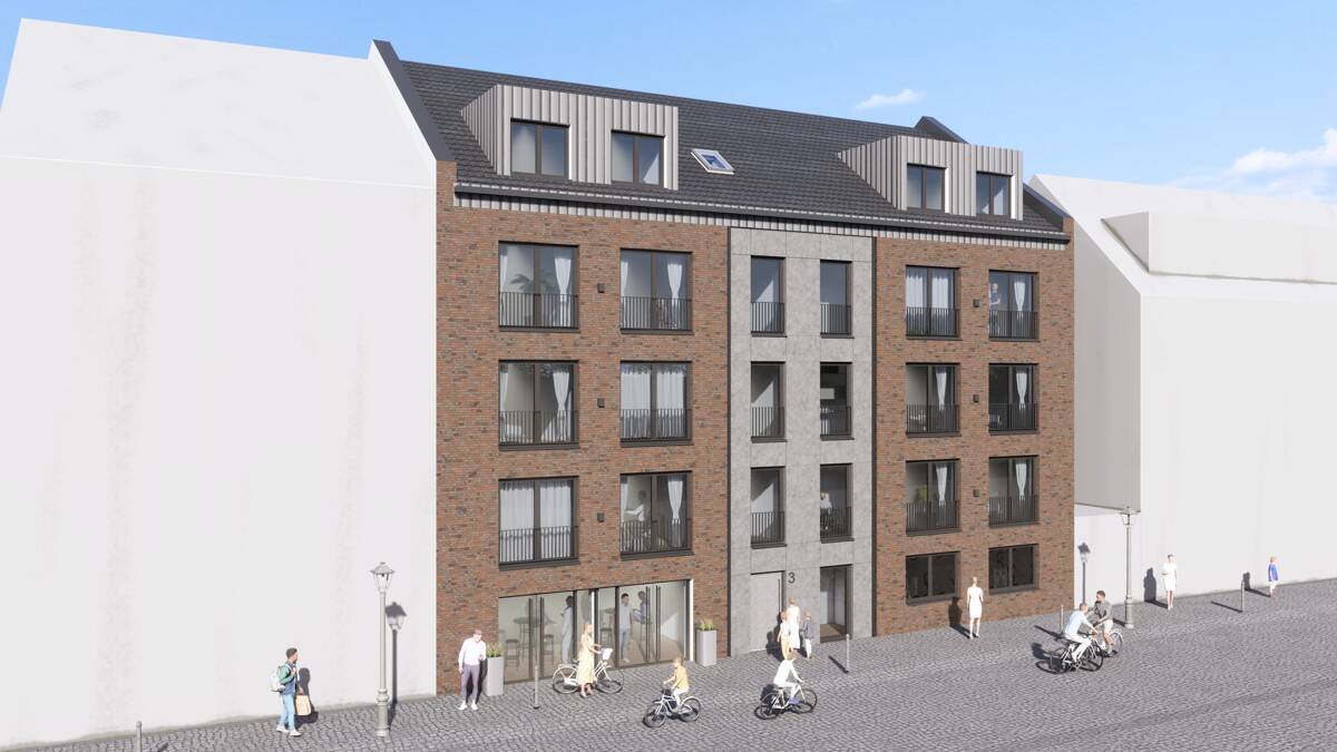 Visualisierung Vorderseite - Ahlen Marienplatz, nur noch eine 3 Zimmer-Neubauwohnung im EH 40 KNG Standard.