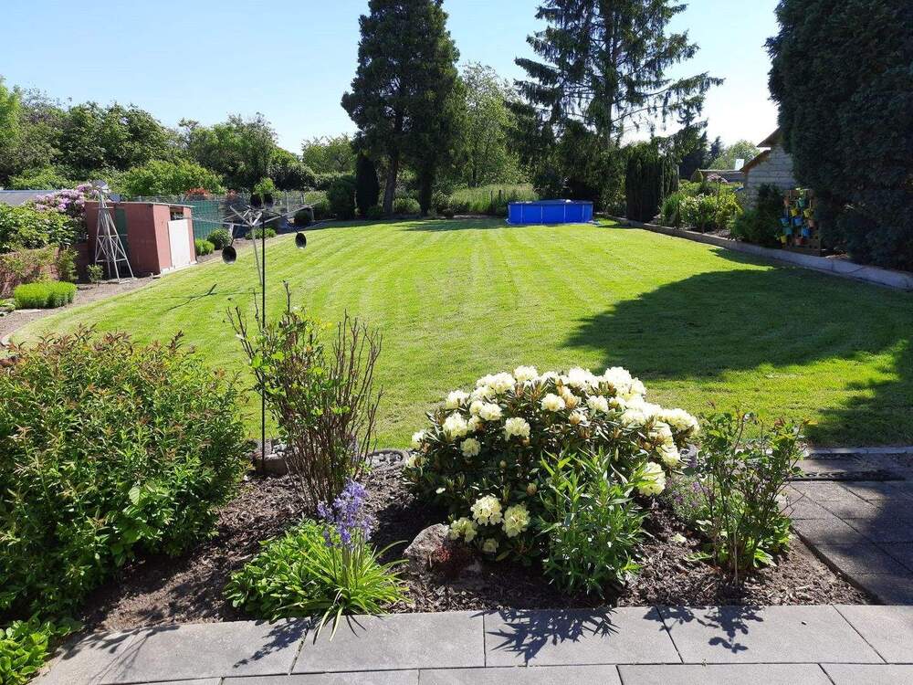 • Blick in den Garten - 6 Zimmer Einfamilienhaus zum Kaufen in Meerbusch