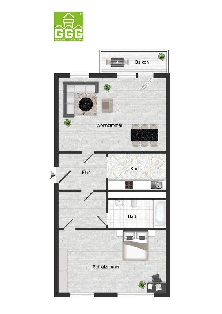 Sie befinden sich hier: 2-Raum-Wohnung mit Balkon, EBK möglich in Chemnitz Hutholz - 25FWNN2IKC7P | 1A-Immobilienmarkt.de