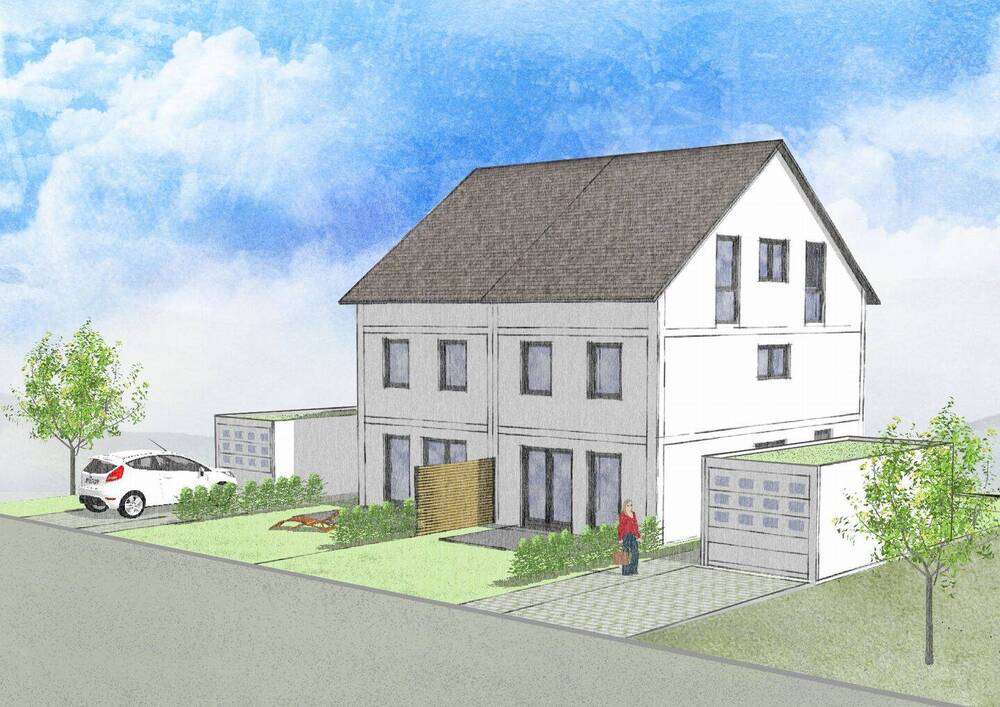 Projektähnliche Illustration - MUSTERHAUS SAMSTAGS GEÖFFNET - Holzgerlingen-Hülben I: Doppelhaushälfte in familienfreundlicher Lage