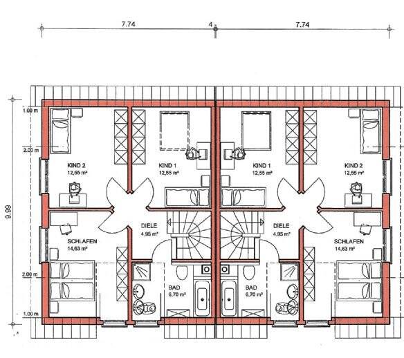 Grundriss Dachgeschoss - Doppelhaushälfte mit 118,00 m² in Schopfheim zum Kaufen
