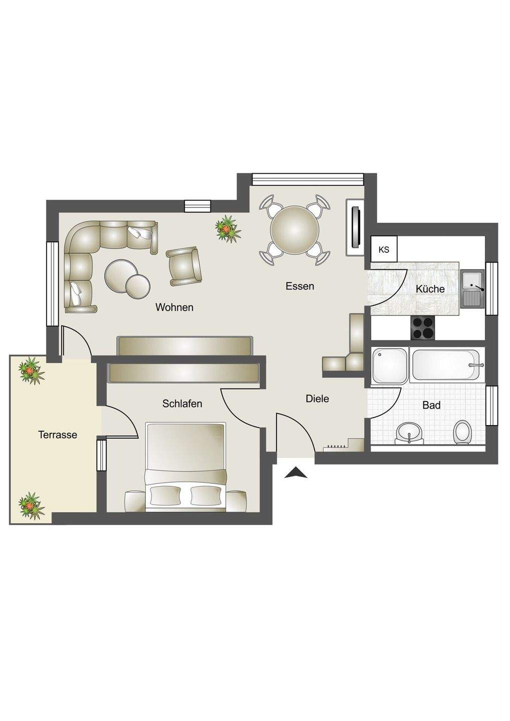 Wunderbar aufgeteilte 2-Zimmer EG-Wohnung mit toller Terrasse u. kleinem Gartenanteil - sofort frei!