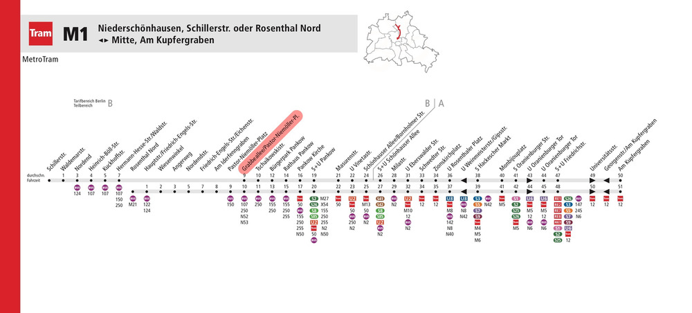 • Tramlinie M1 fußläufig -