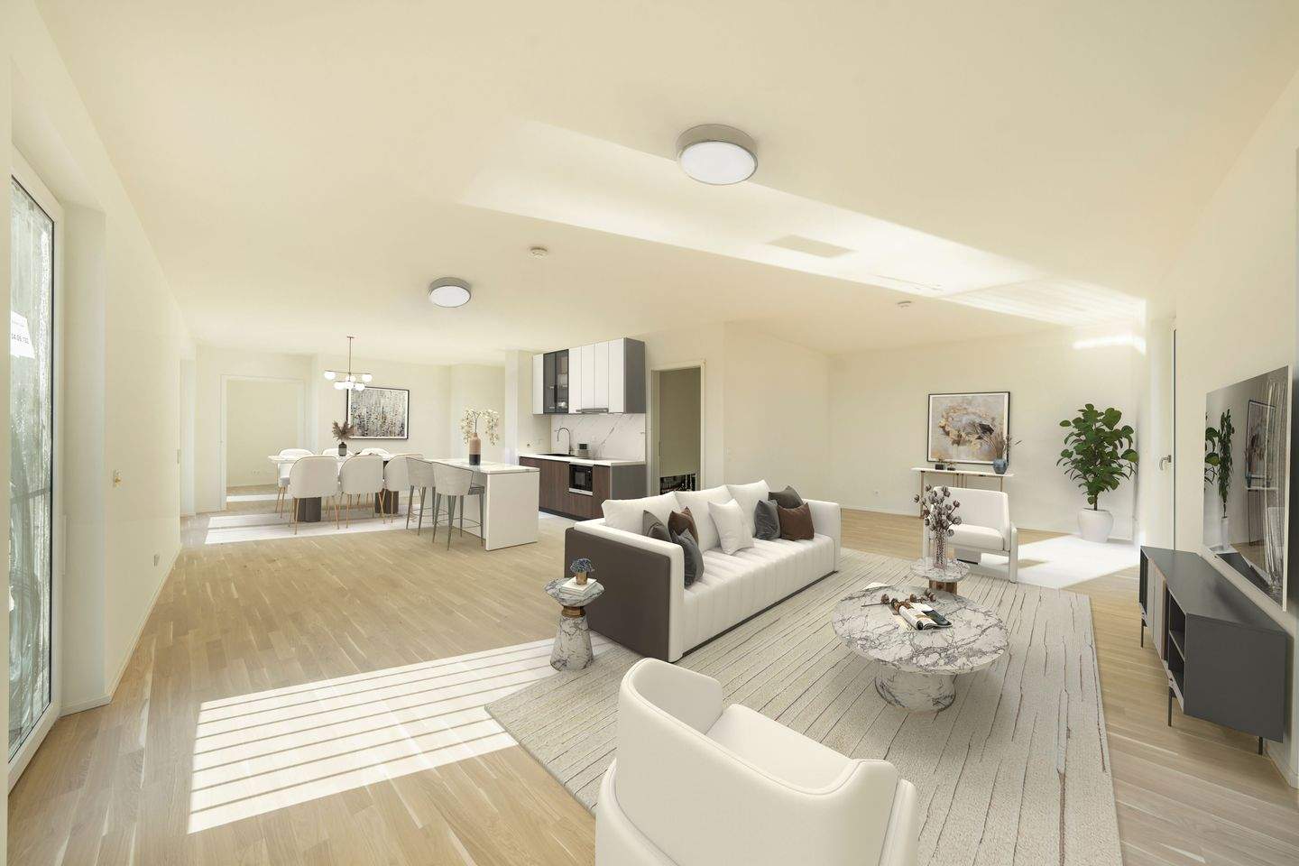 • Einrichtungsbeispiel offene Küche/ Wohnbereich - Etagenwohnung mit 128,80 m² in Berlin zum Kaufen