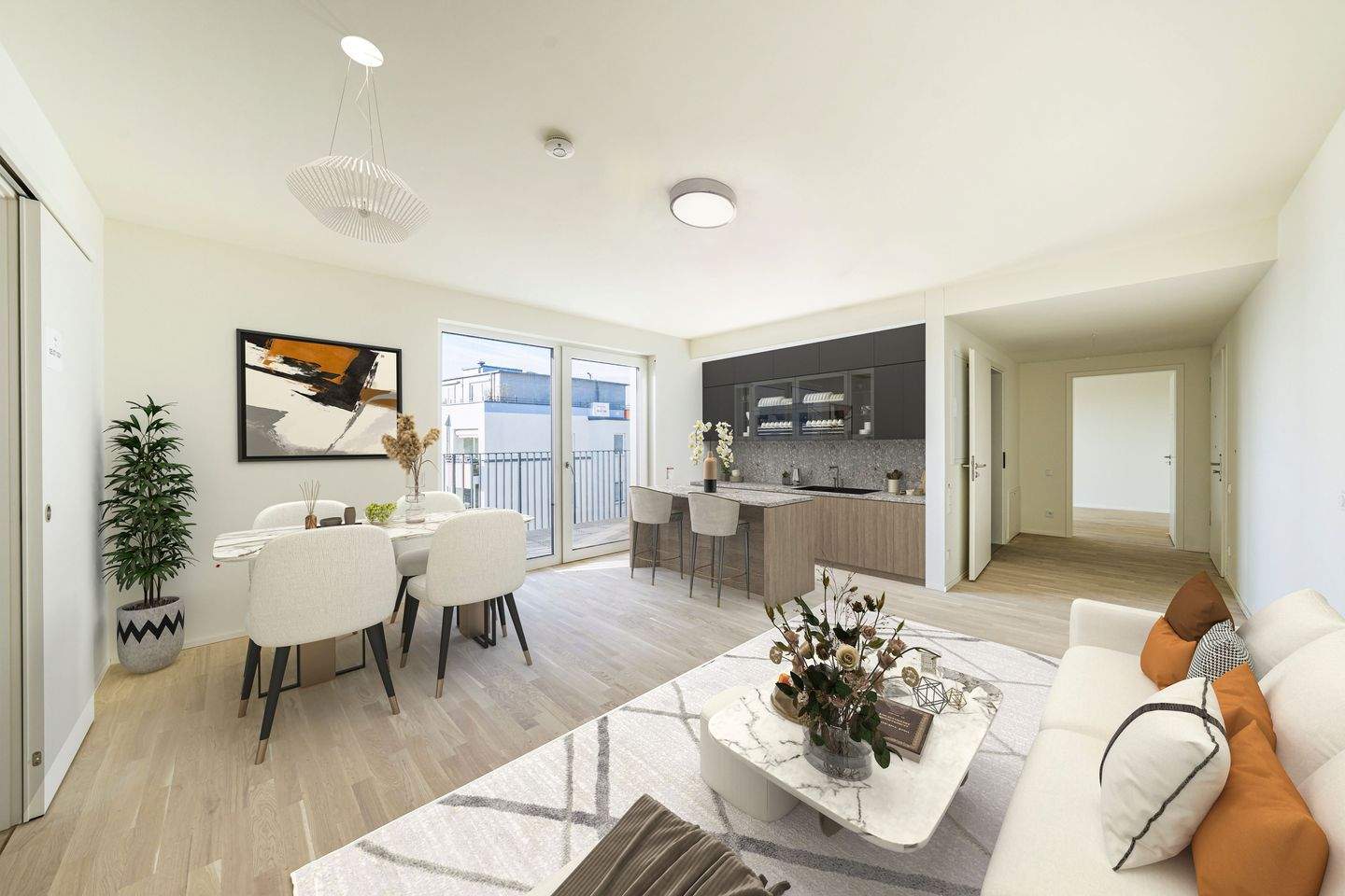 • Wohn- und Essbereich mit Zugang zum Balkon -