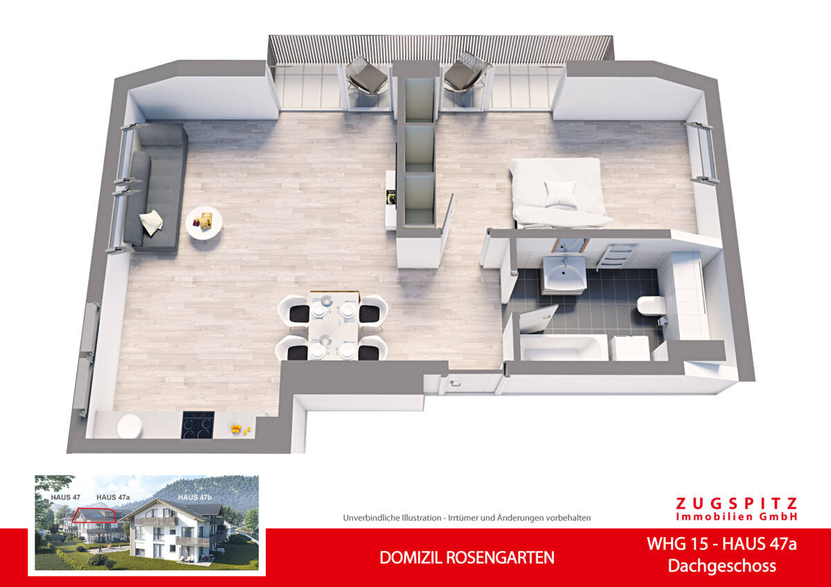Sie befinden sich hier: DOMIZIL ROSENGARTEN -2 Zi Wohnung -WHG15 in Garmisch-Partenkirchen - 24WFRP3DR22U | 1A-Immobilienmarkt.de