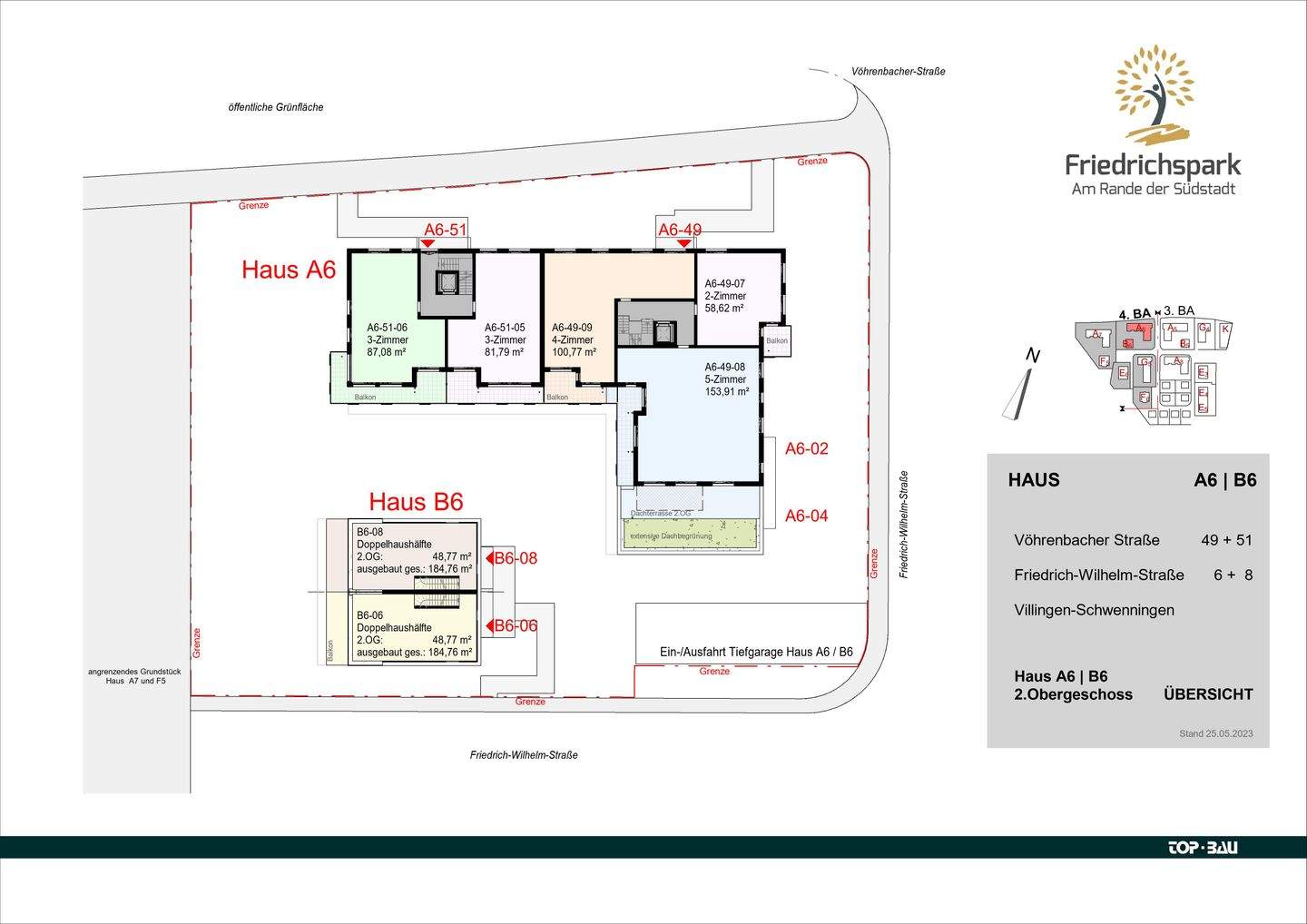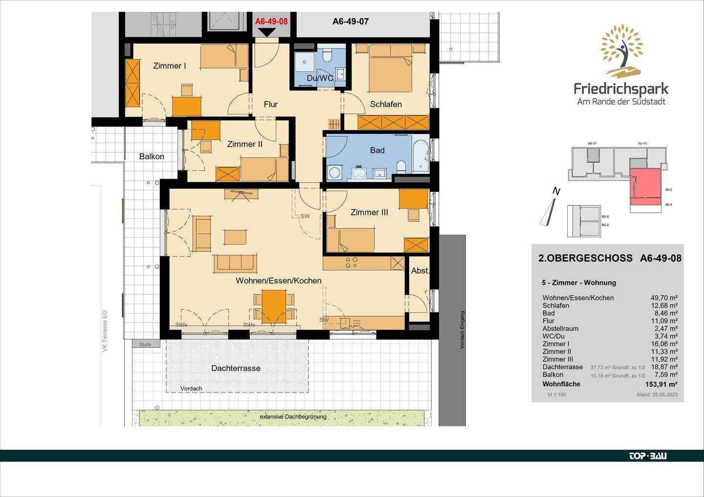 A6-49-08 Terrasse - 'Friedrichspark': Penthaus-Charakter, große Dachterrasse, Balkon, zwei vollwertige Bäder, KfW 55!