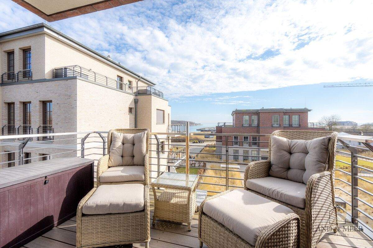 Balkon mit Meerblick - Neuwertige 3-Zimmer-Wohnung mit Meerblick am Yachthafen - TG-Stellplatz & Wallbox