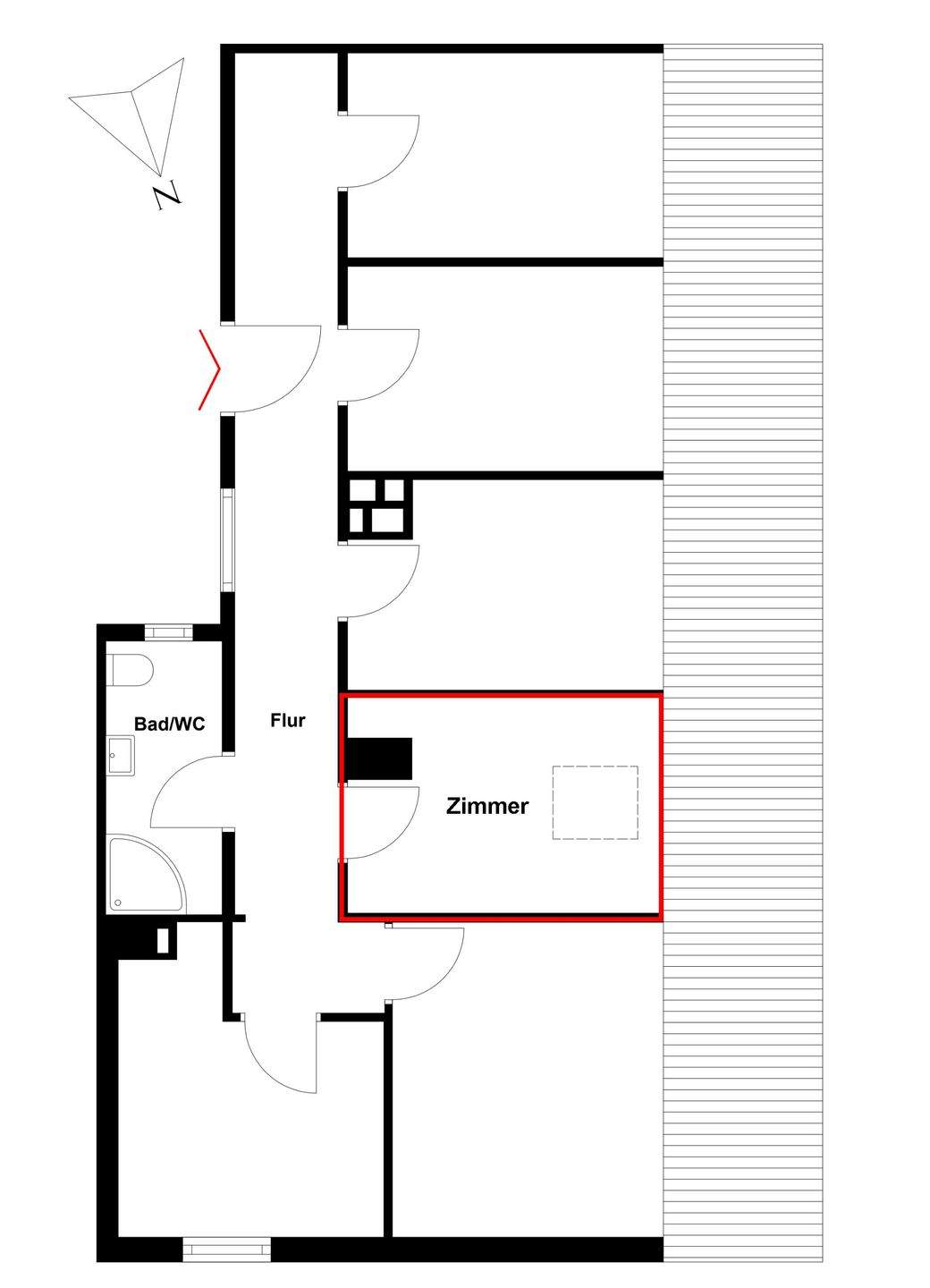 • Mansarde im DG mit Gemeinschaftsbadezimmer -