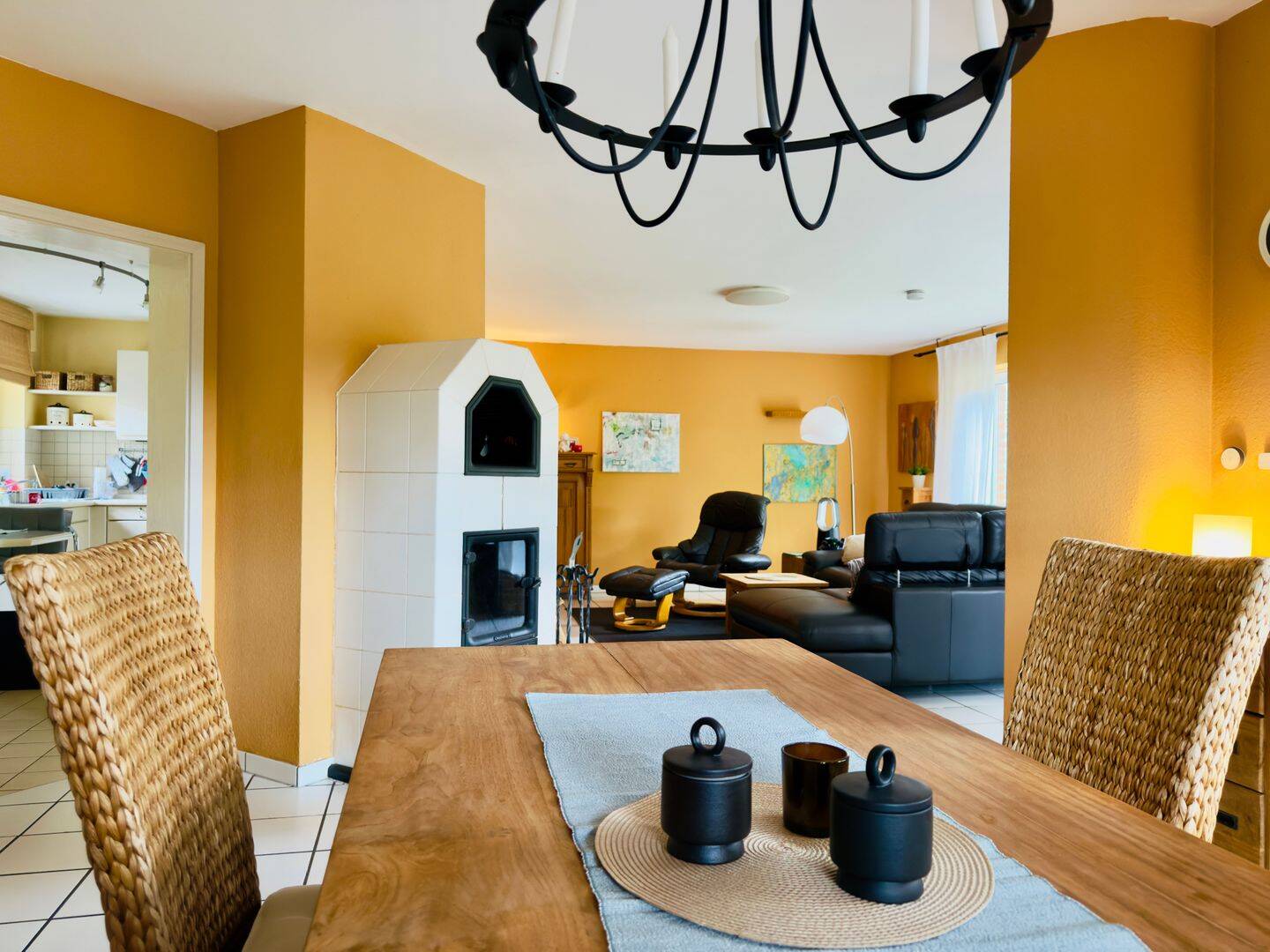 • Essbereich mit Kaminofen -
