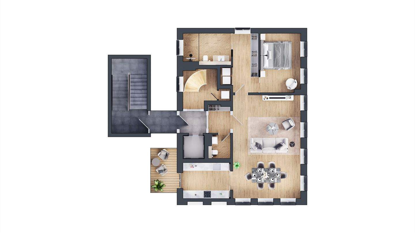 • Wohnbeispiel Dachterrasse - 2 Zimmer Etagenwohnung in Eckernförde