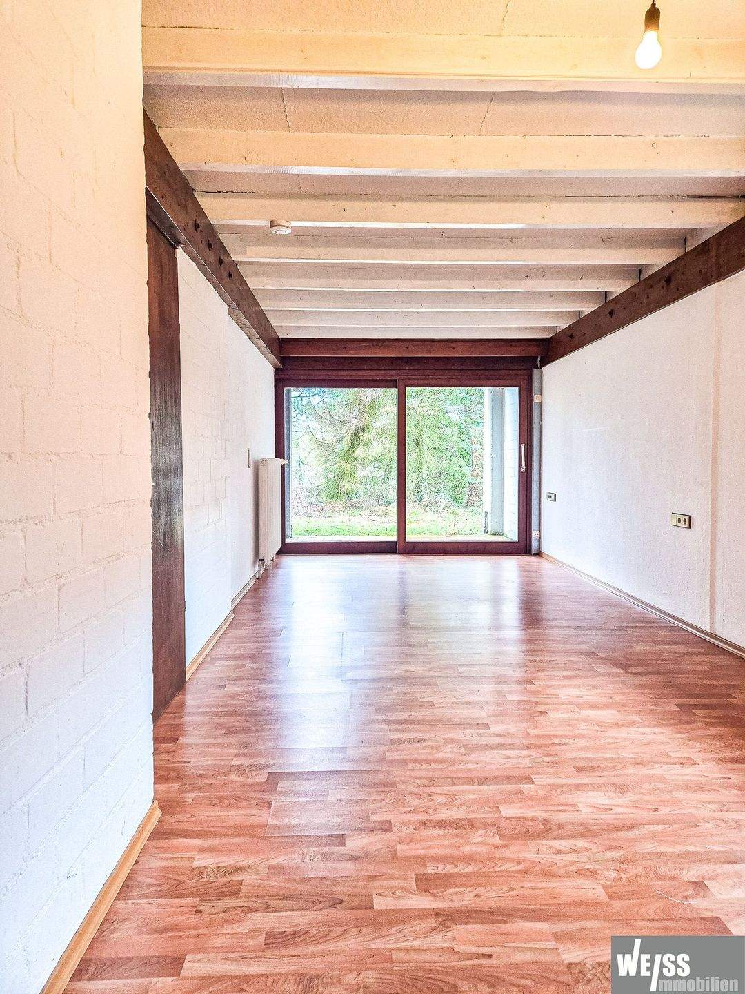 • Blick zur Terrasse hinter Garage -