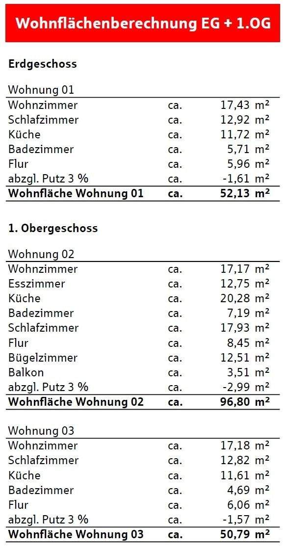 • Wohnflächenberechung EG + 1. OG -
