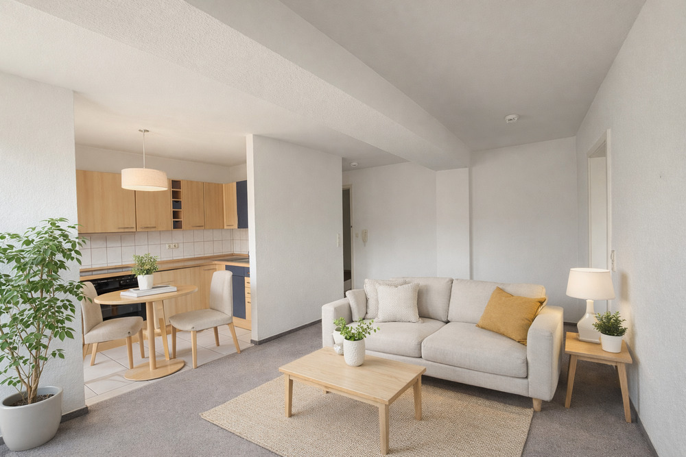 • Wohnzimmer (Einrichtung KI generiert) - 2 Zimmer Etagenwohnung zum Kaufen in Stuttgart