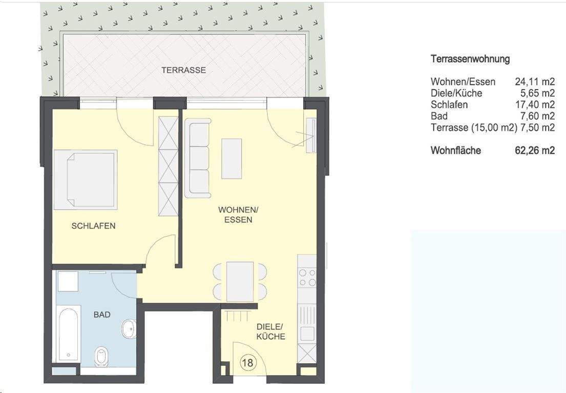 VERKAUFS-START: 2-Zimmer-Terrassen-Wohnung ca. 62,60 m², Keller, TG-Platz a. W. WHG-Nr. 18