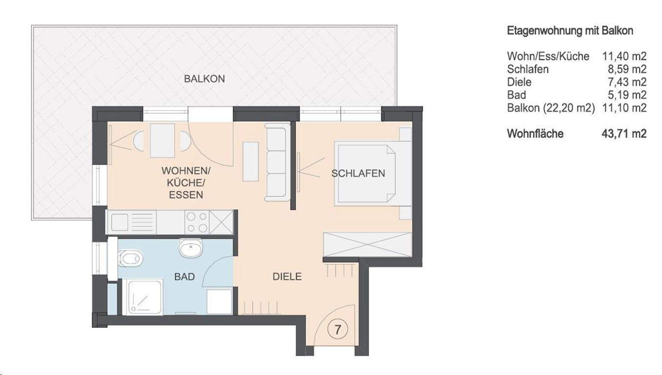 VERKAUFS-START: 2-Zimmer-Balkon-Wohnung ca. 43,70 m², Keller, TG-Platz a. W. WHG-Nr. 07