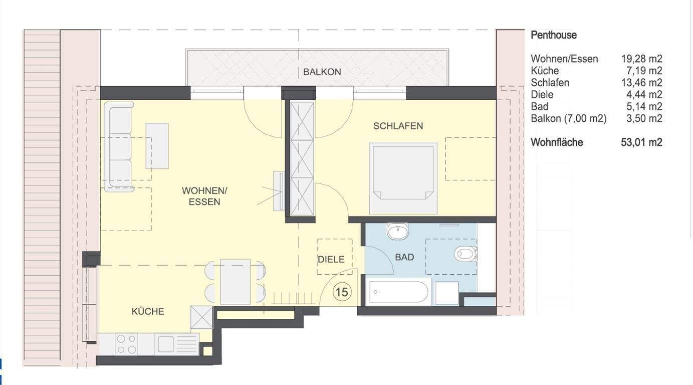 VERKAUFS-START: 2-Zimmer-Balkon-Wohnung ca. 52,50 m², Keller, TG-Platz a. W. WHG-Nr. 15