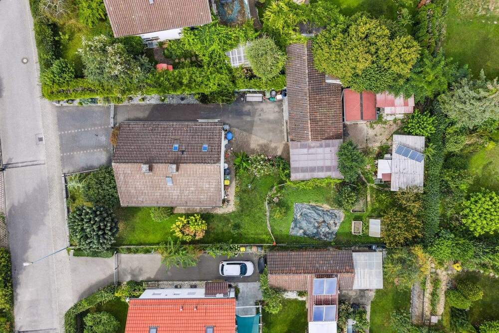 Drohnenansicht - Zweifamilienhaus mit zusätzlichem Bauplatz