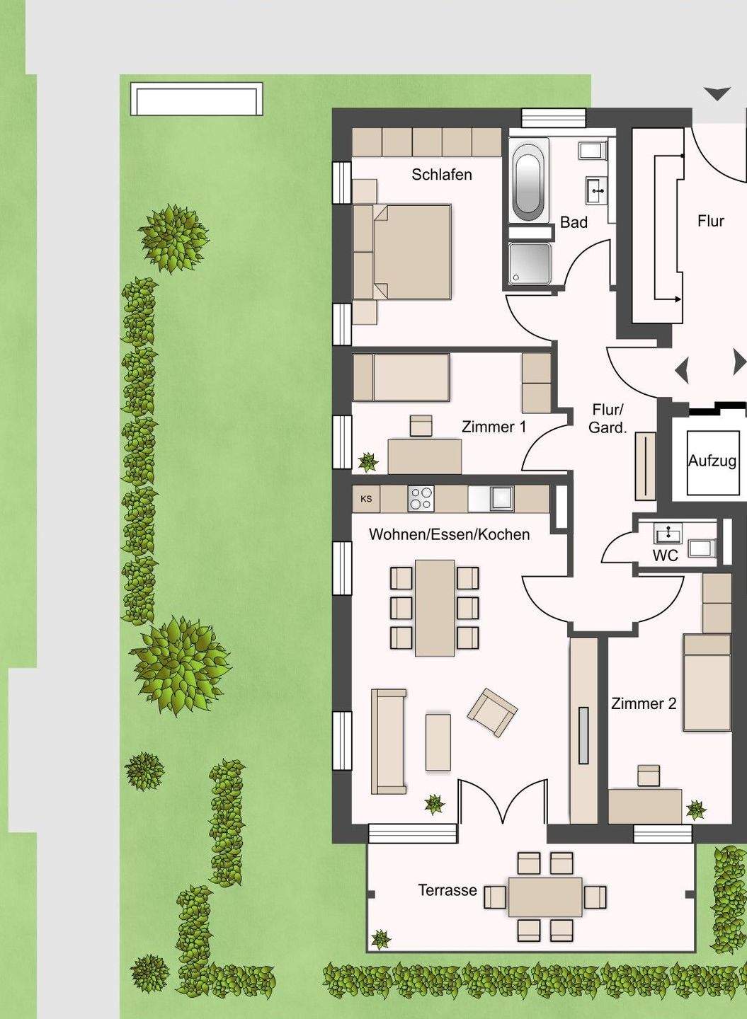 EG-Wohnung im Grünen mit Südterrasse & TG
