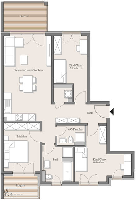 High5_Wohnbeispiel2 - 4 Zimmer Etagenwohnung zum Kaufen in Hanau-Steinheim