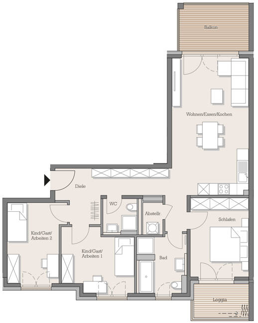 High5_Wohnbeispiel2 - 4 Zimmer Etagenwohnung zum Kaufen in Hanau-Steinheim