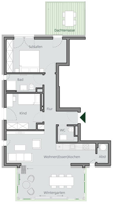 Wunderschöne 3-ZW mit Dachterrasse & Wintergarten im grünen Oberrad | Effizienzhaus 55EE Standard