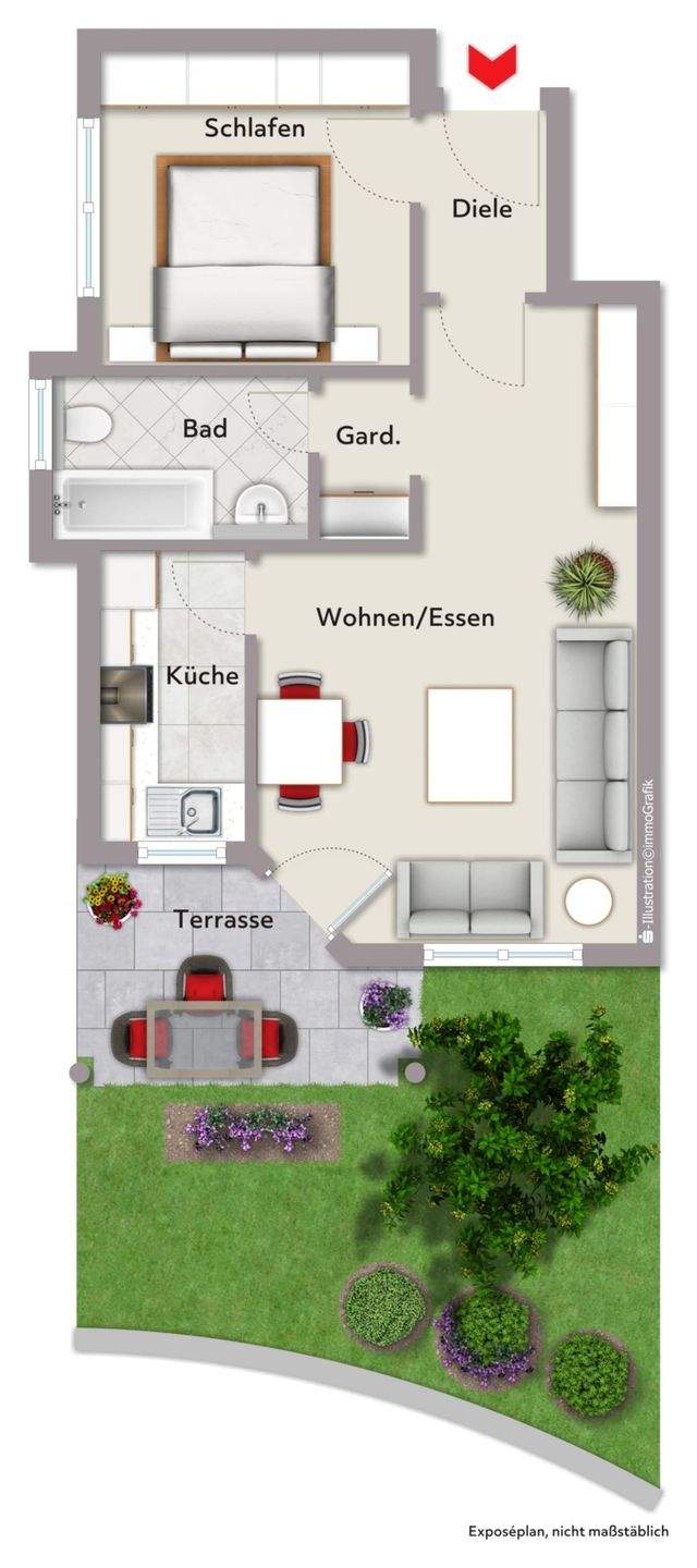 Erdgeschosswohnung mit Terrasse und TG-Stellplatz