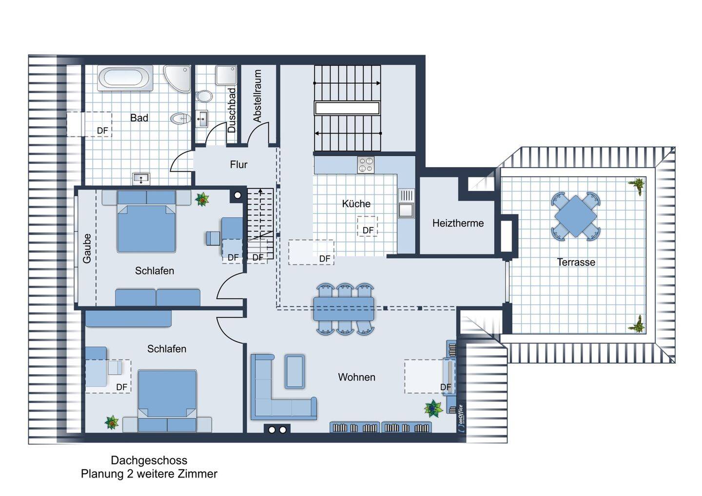 Dachgeschoss Planung mit 3-Zimmern -