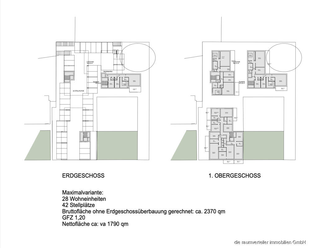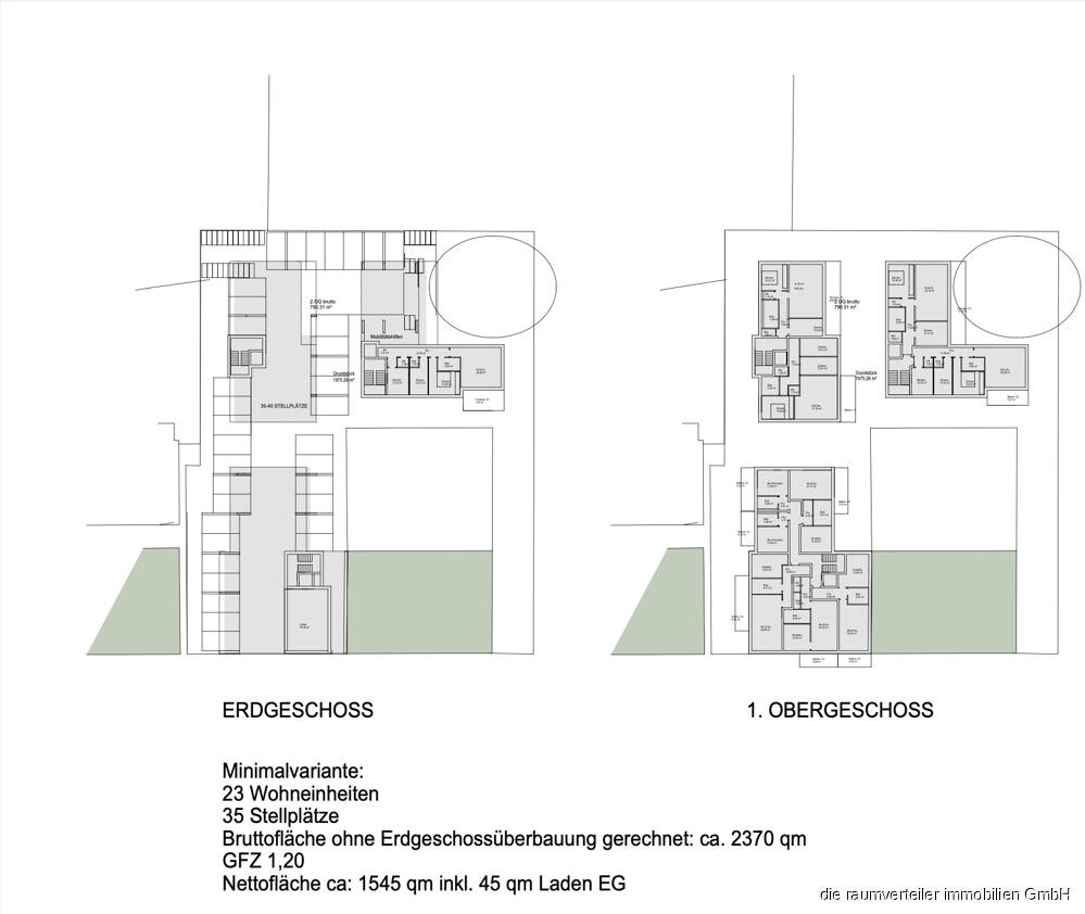 Zeichnung - Bauträgergrundstück Mitten in Rosenheim, ca. 2.000 qm, bebaubar mit 23 bis 28 Wohnungen + Parkdeck