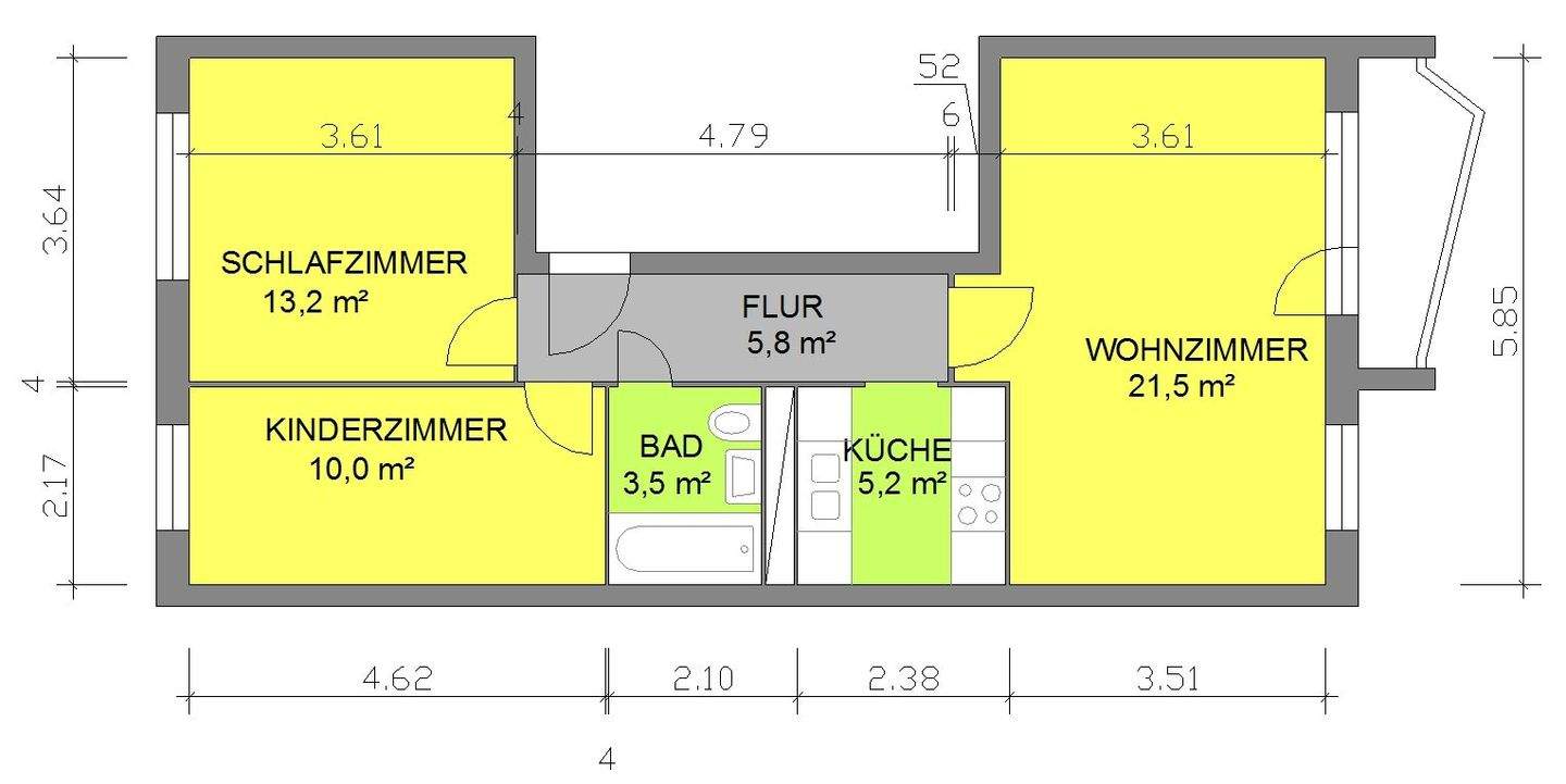 | Wohnfläche: | ca. 61,30 m² |
