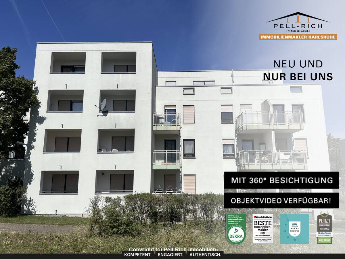 • Neu&Nur bei Pell-Rich - Objekt 916 - SONNENPLATZ ÜBER DEN DÄCHERN: 2-Zimmer-ETW mit großzügiger Dachterrasse & TG-Stellplatz in Neureut