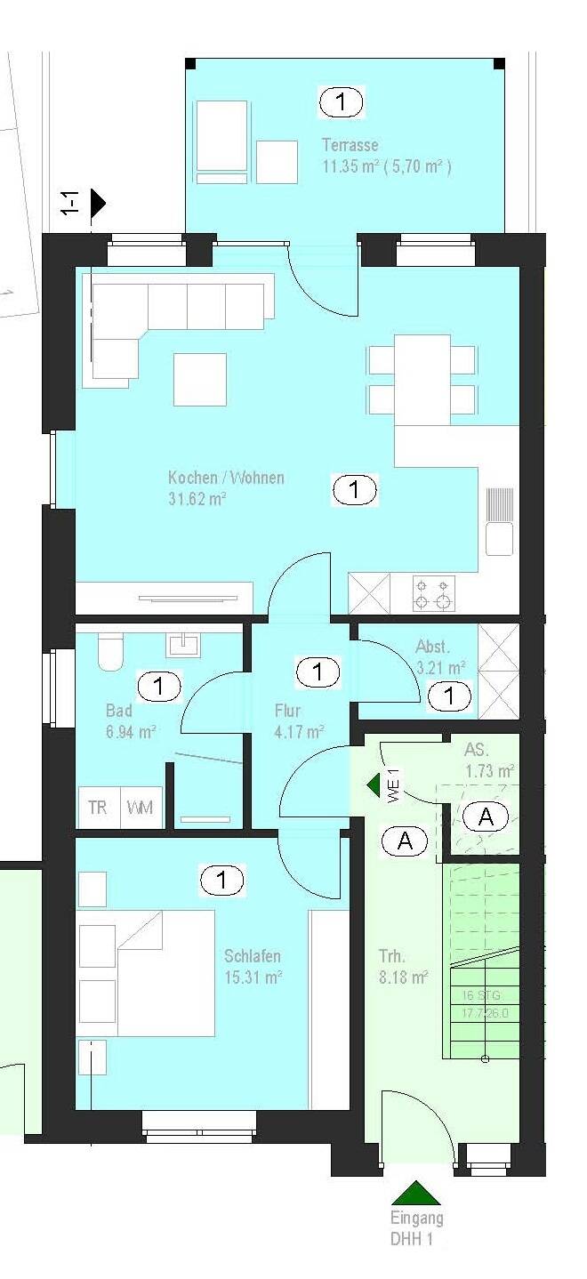 Grundriss Erdgeschoss_DHH 1 und DHH 2 - Terrassenwohnung mit 67,00 m² in Gescher zum Kaufen