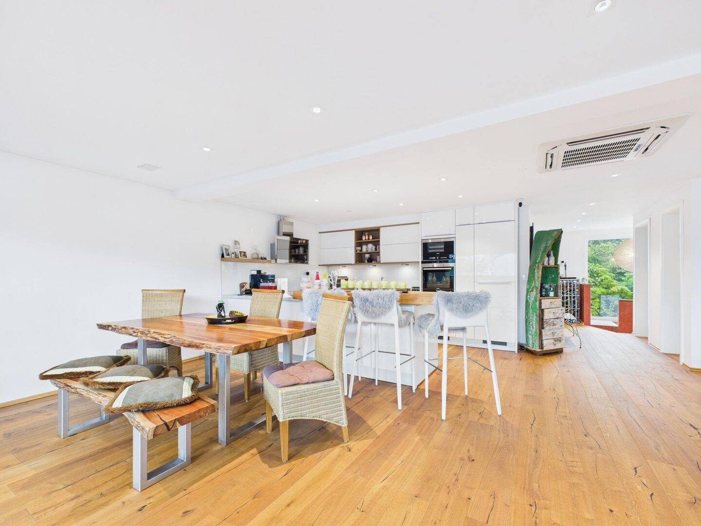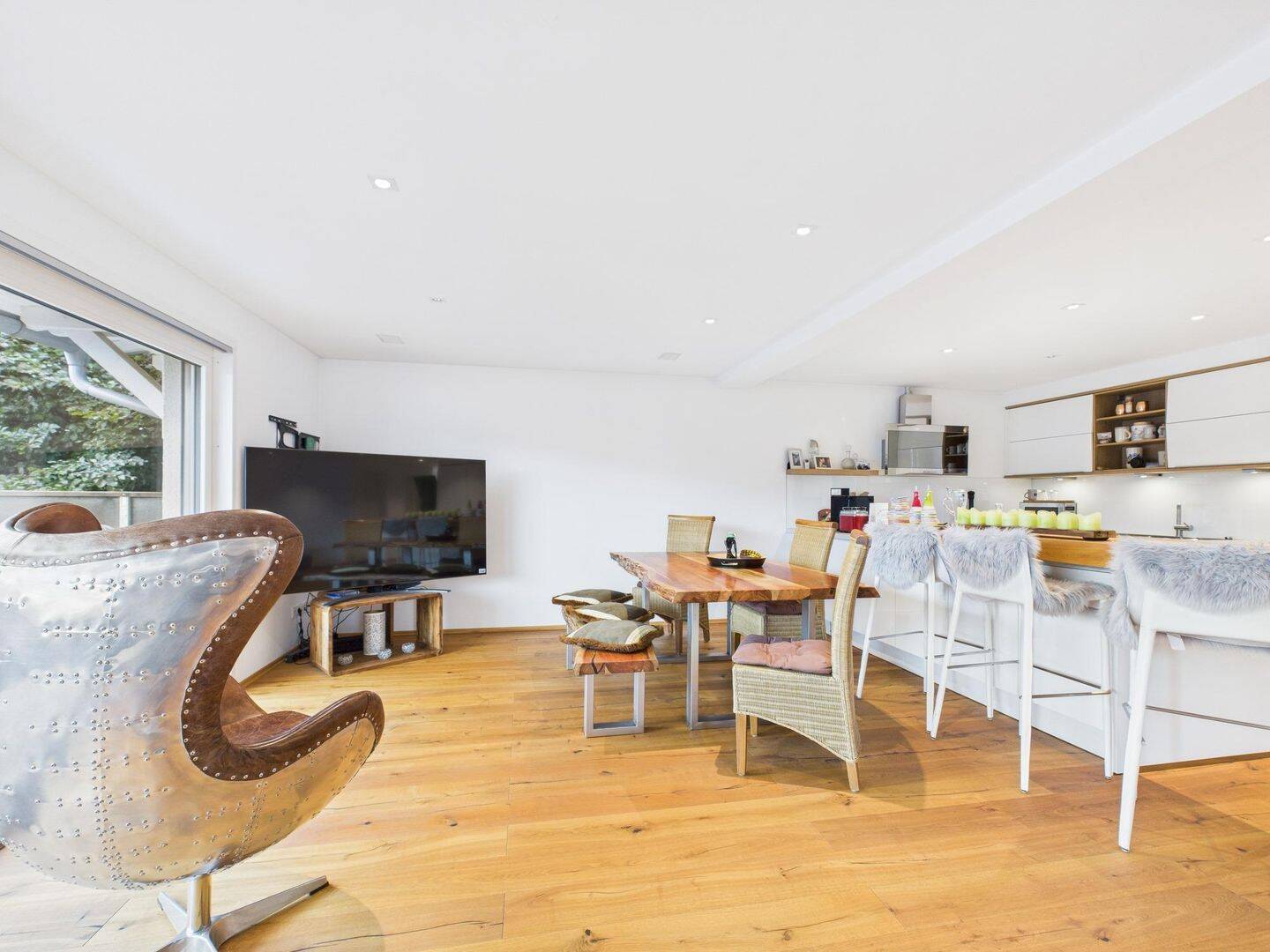 • Blick zum Kamin & Essbereich -