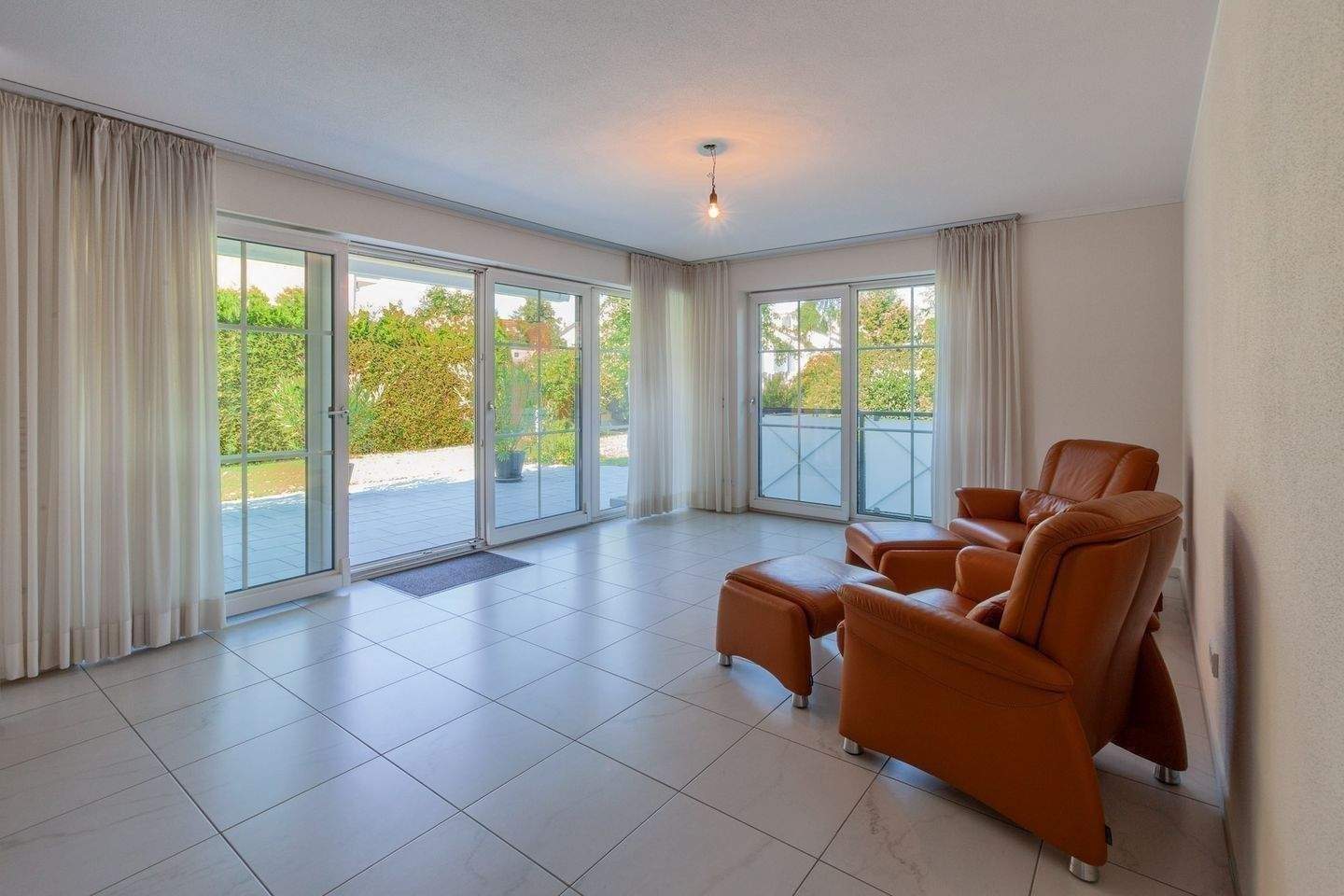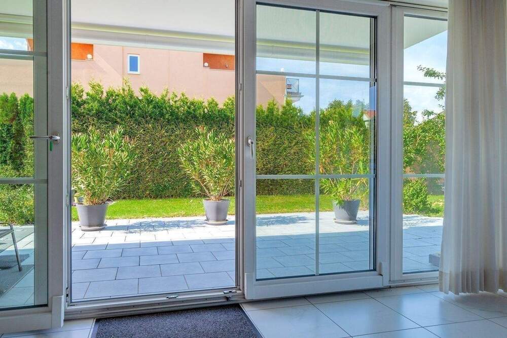 • Blick auf die Terrasse vom Wohnzimmer -