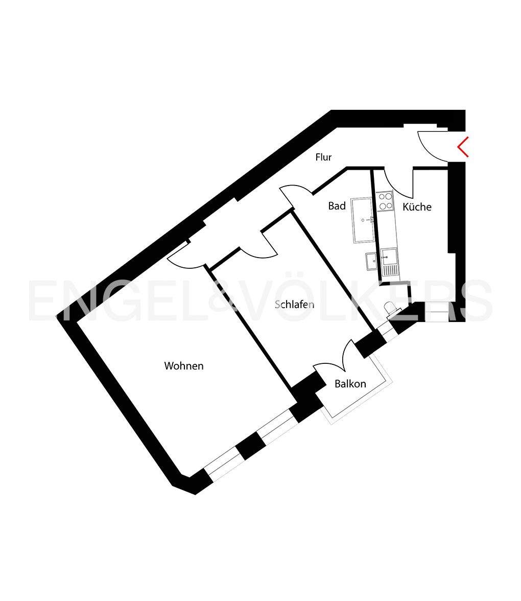 • Küche mit Essbereich - 2 Zimmer Etagenwohnung zum Kaufen in Berlin