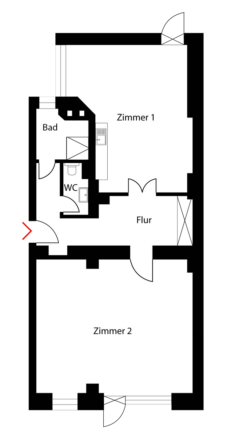• Weitere Ansicht Zimmer 2 - 2 Zimmer Etagenwohnung zum Kaufen in Berlin-Friedrichshain