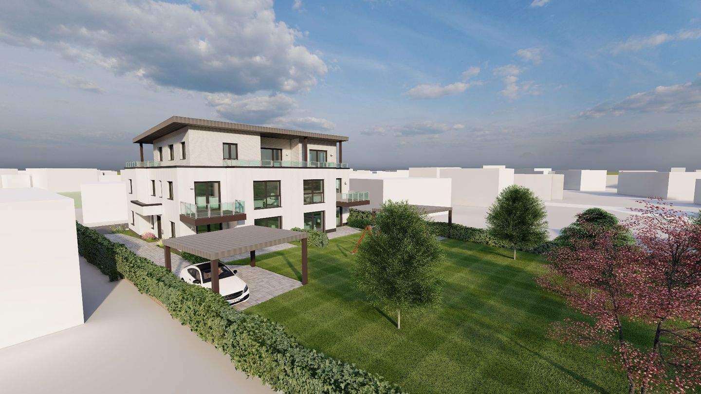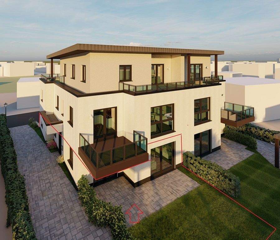 Rückansicht - Neubau Erstbezug! Moderne Erdgeschosswohnung in ruhiger Süd-West-Lage mit Terrasse + kl Grundstück