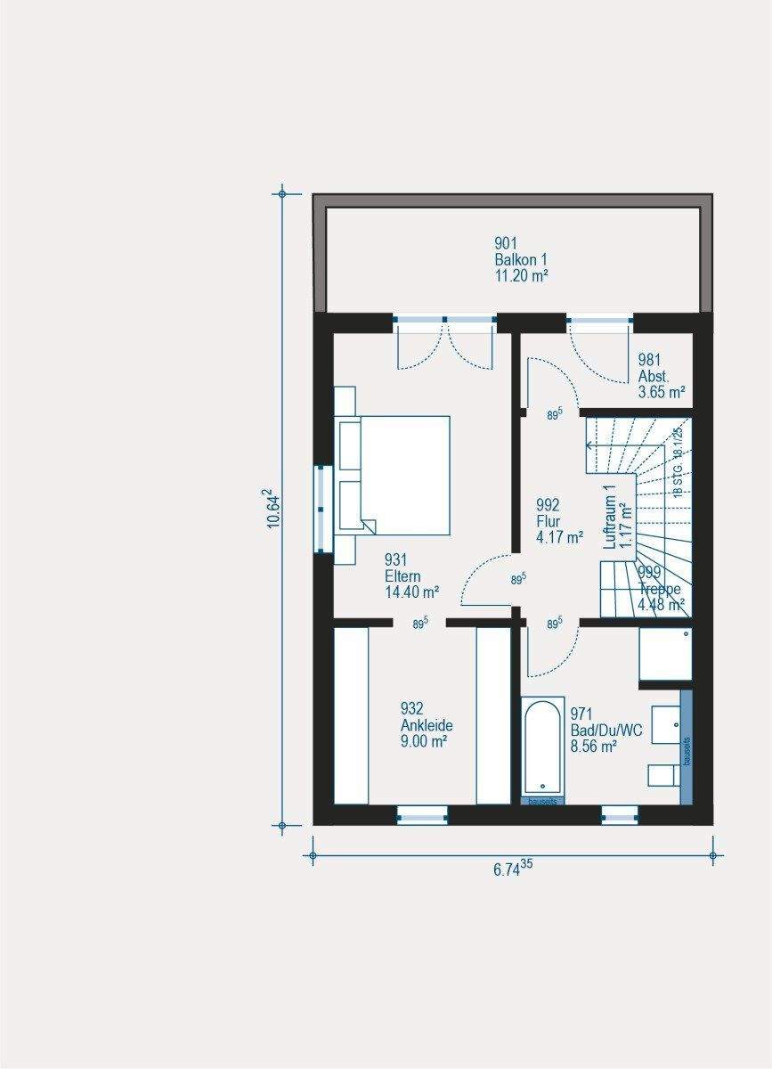 Grundriss Obergeschoss ohne Mehrpreis frei änderbar. -
