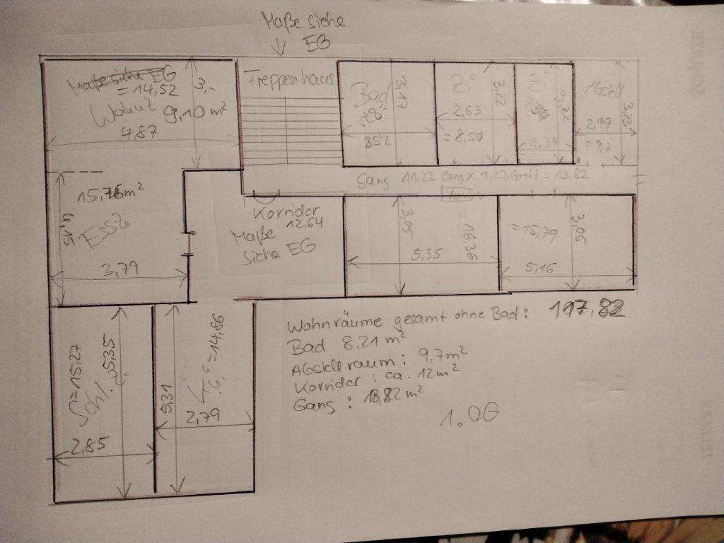Die obere Etage verfügt über ca. 135 m² Wfl. mir einer Küche mit Essbereich, einen Abstellraum, , ein Bad mit Dusche und Wanne, 1 Wohnzimmer und 5 Schlafzimmer .