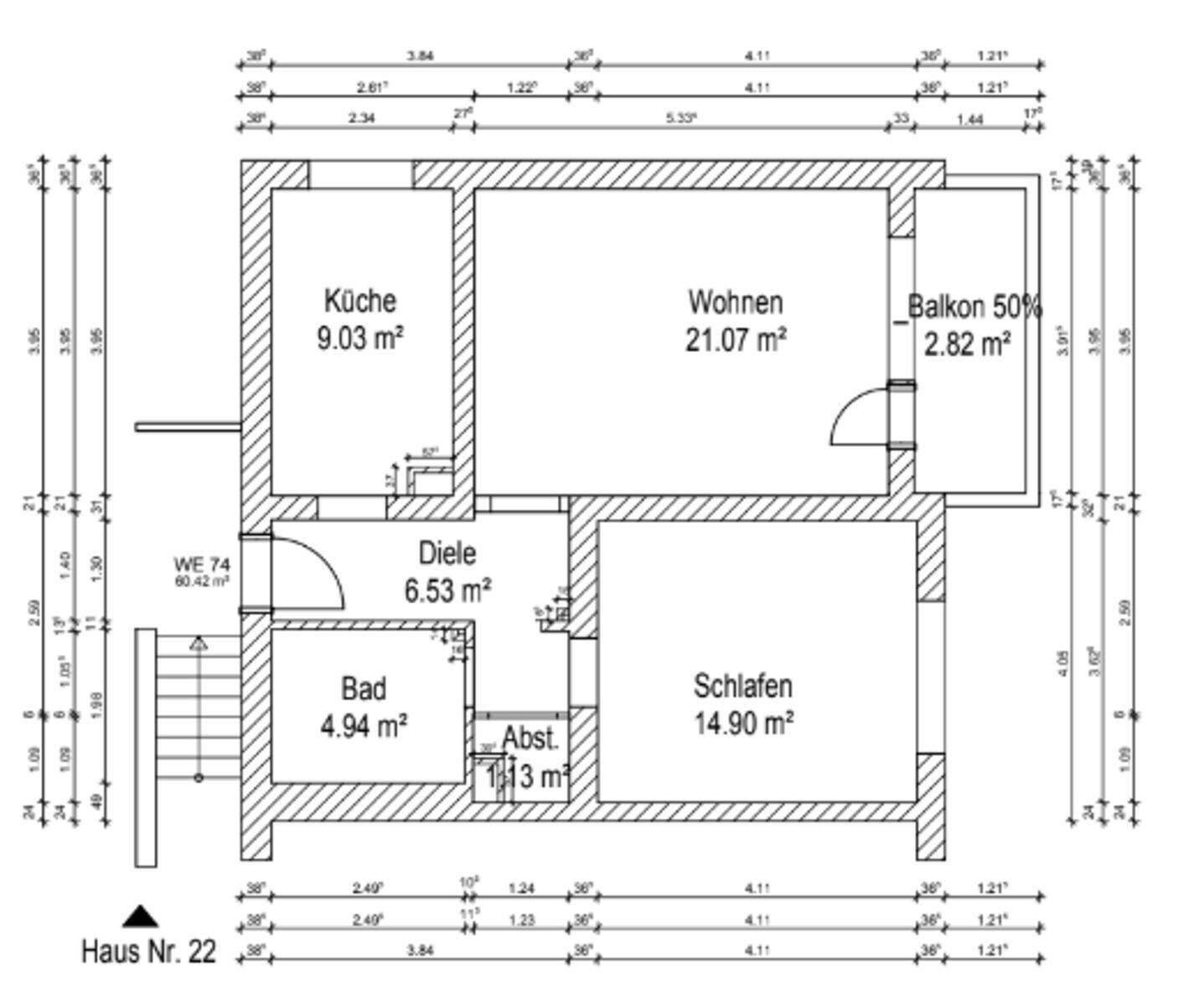 Wohnfläche:ca. 60,60 m²