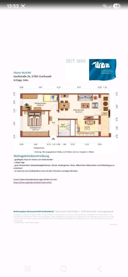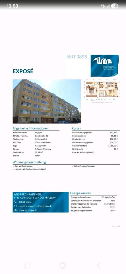 Sie befinden sich hier: 3 Raum Wohnung mit schöner Aussicht in Greifswald Groß Schönwalde - 3354820236-203-247 | 1A-Immobilienmarkt.de