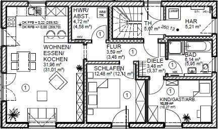 • Grundriss EG Haus 1 -