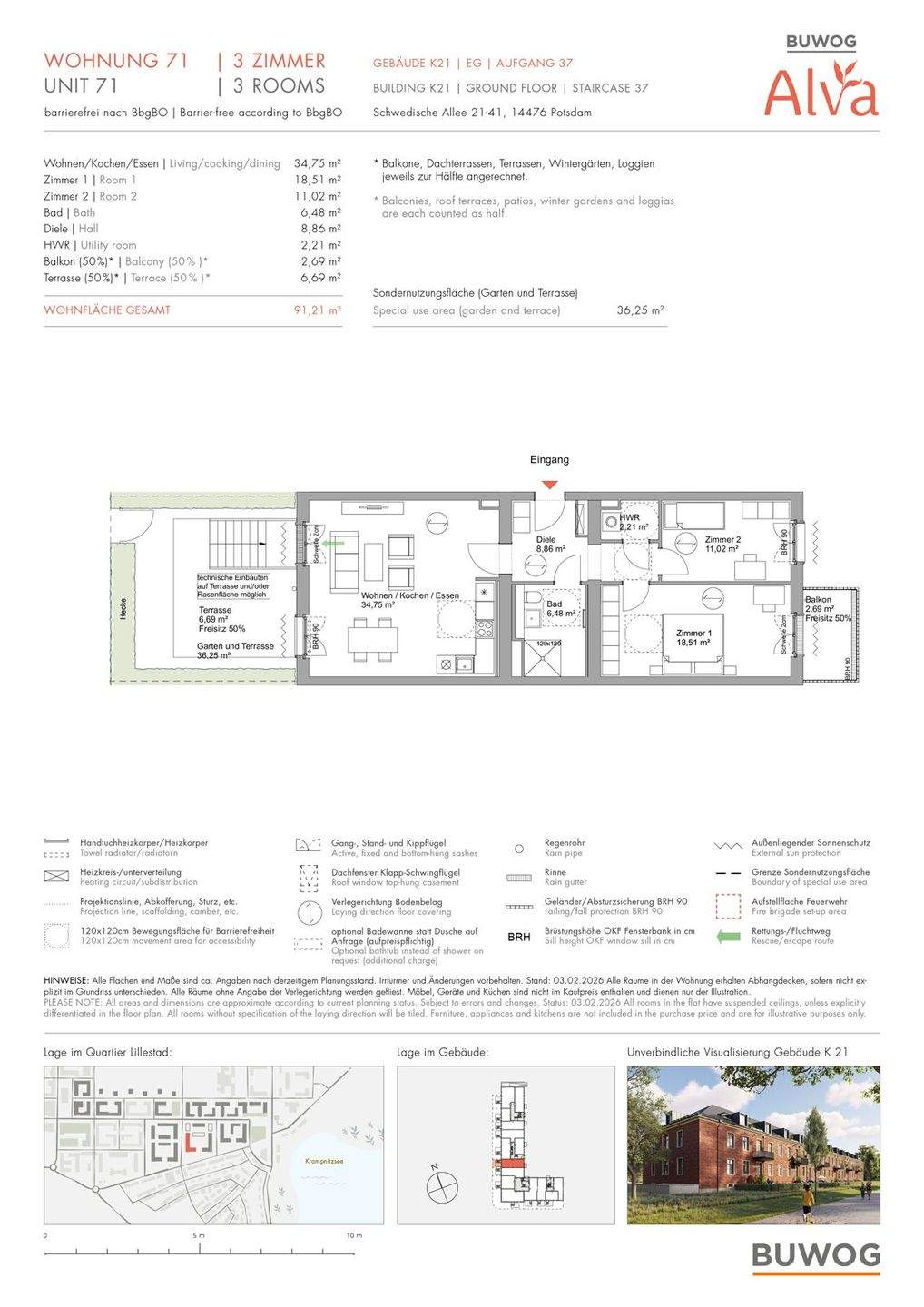 BUWOG - ALVA - Barrierefreie 3 Zimmer-Wohnung mit ca. 91m², Hauswirtschaftsraum, Terrasse und Garten
