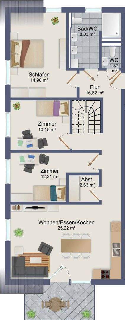 • Visualisierung Zimmer - Etagenwohnung mit 132,60 m² in Rottenburg zum Kaufen