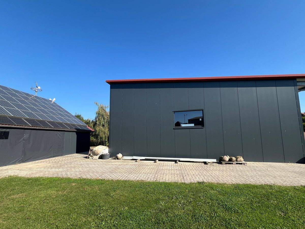 Zweifamilienhaus mit zwei Gewerbehallen