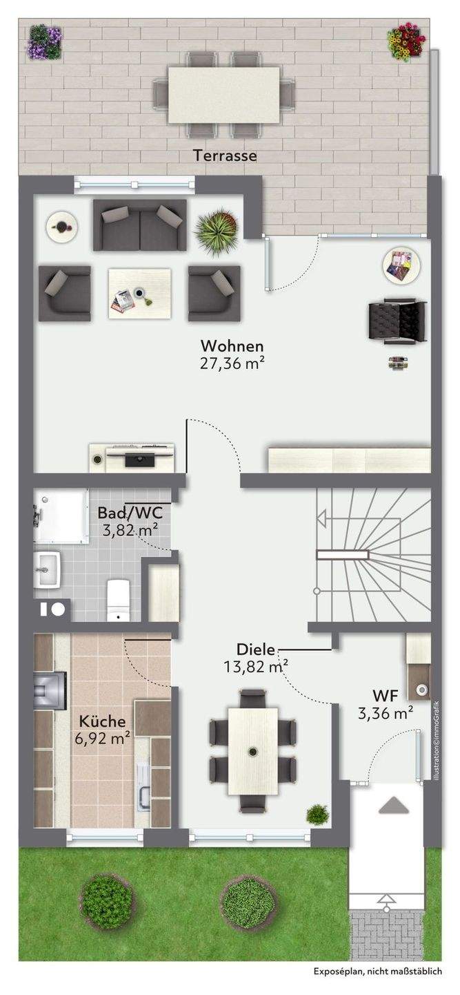 • Essplatz und Treppe im Erdgeschoss -